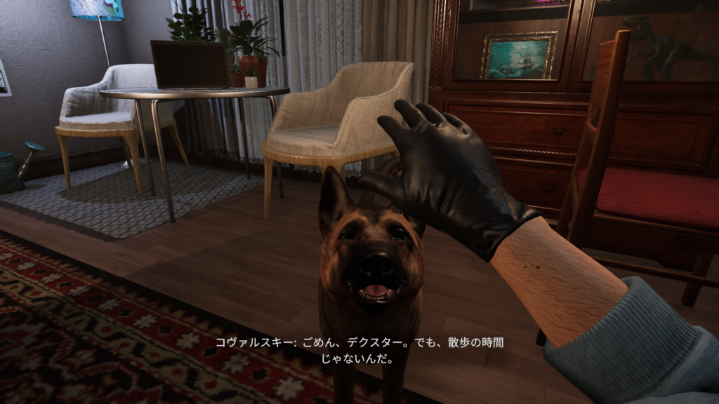 家にいるペットのデクスターがいつも主人を優しく出迎えてくれるので、コヴァルスキーは罪悪感を胸に抱きながらも仕事をこなしていきます。