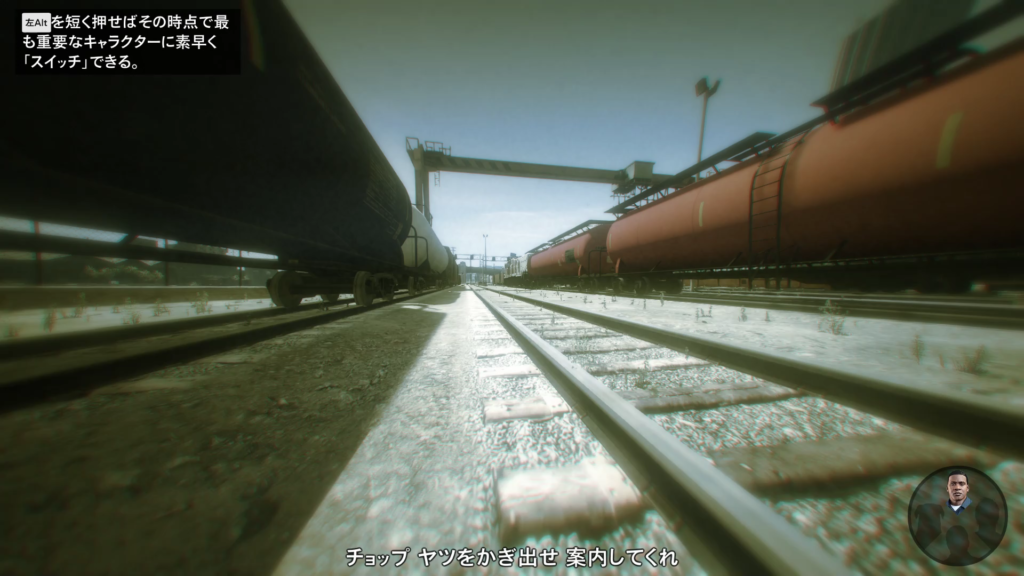 貨物列車が停めてある場所でチョップにスイッチできるようになったら、[Altキー]を短く押して10秒以上フランクリンから操作を切り替えましょう。