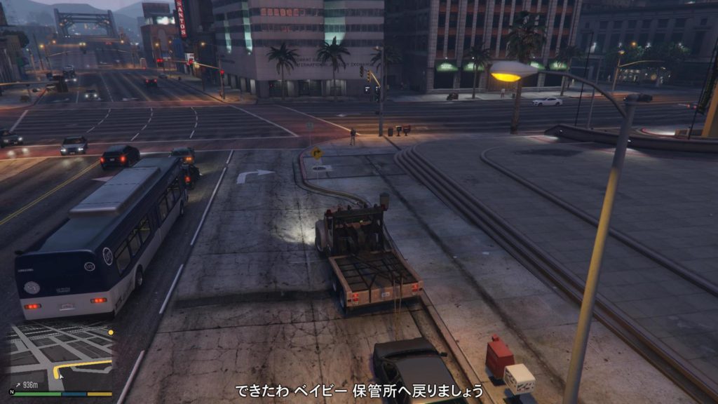 ミッション開始時、徒歩で移動するとトーニャの歩く速度が遅いため、フランクリンの車を使ってレッカー車まで向かうのがおすすめです。